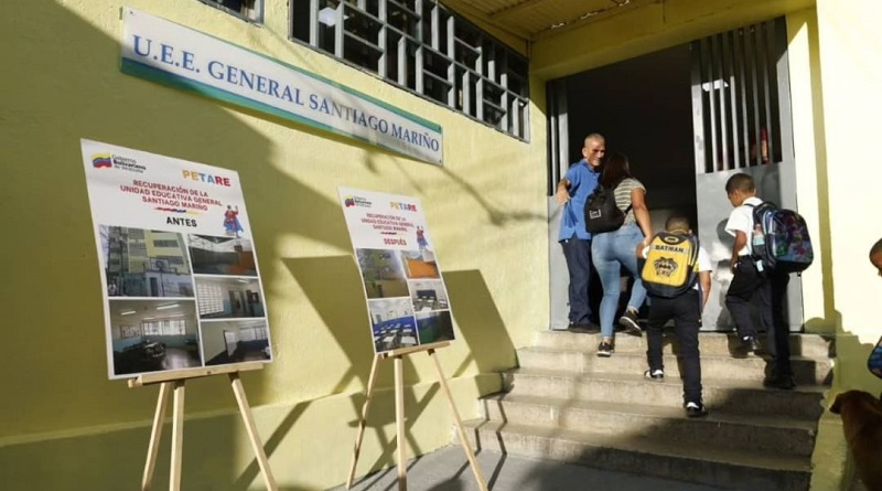 El ministro del Poder Popular para la Educación, Héctor Rodríguez, presentó la rehabilitación de la Unidad Educativa “Santiago Mariño” en la parroquia Sucre de Caracas. Este evento ocurrió el 21 de octubre. La obra abarcó trabajos de pintura, friso y sustitución de techos. Además, se donaron kits deportivos y mobiliario escolar para beneficiar a los estudiantes.